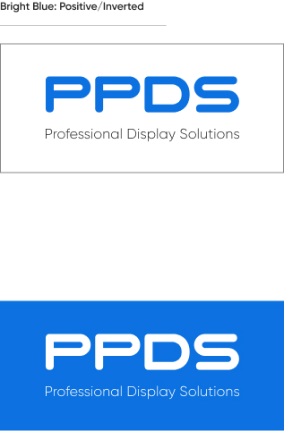 The PPDS logo offers options with square or horizontal linear alignment, in the PPDS bright blue colour, for corporate communications.