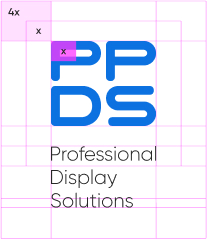 The PPDS wordmark always has a clear space around it. This clear zone is equal to one quarter of the base unit area (x); no text or symbols can appear in this area. When the wordmark is used in combination with other trademarked names the clear zone is equal to the base unit area (4x).